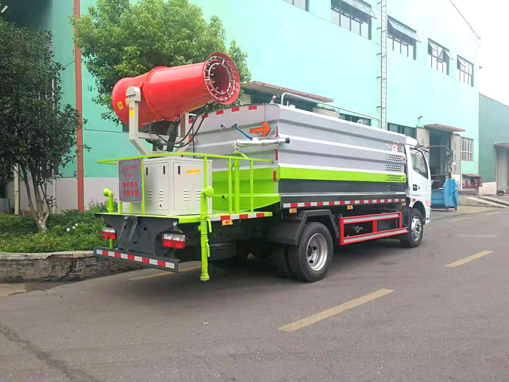 1.具備灑水車所有功能,前沖(噴)后灑,帶側(cè)噴花灑,罐體后帶工作平臺,平臺上安裝綠化灑水高炮,炮可全方位360°旋轉(zhuǎn),可連續(xù)調(diào)成直沖狀、大雨、中雨、小雨、毛毛雨,帶安全護(hù)欄,配備專用大功率灑水泵,泵可抽水排水,吸程≥7m,灑水寬度≥15m,灑水炮射程≥20m,帶消防接口和自流閥,隨車選裝20米綠化卷盤,緊急時可抗旱運(yùn)水和消防使用。