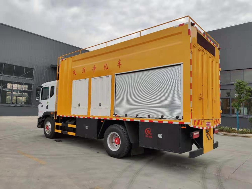吸污凈化車將化糞池的污物分類處理,既不造成二次污染,也將大糞榨成有機(jī)肥,對污物進(jìn)行了充分的利用,最后排放出來達(dá)標(biāo)的污水。吸污凈化車標(biāo)配小型沖洗泵,可對吸污凈化設(shè)備進(jìn)行沖洗,同時可根據(jù)客戶需求,加裝管道疏通功能,可選裝進(jìn)口16兆帕高壓泵或者國產(chǎn)21兆帕高壓泵,配2立方清洗水箱,60米高壓管。 吸污凈化車每小時可出糞餅500-800Kg,根據(jù)化糞池污物的稠密度,處理污水的速度不等,一般為8-15M³/h。