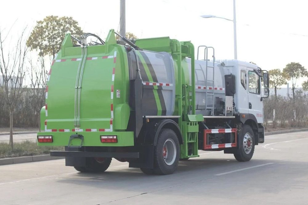 餐廚垃圾車,又稱餐余垃圾車、余廚垃圾車或者泔水車,餐廚垃圾車是垃圾車中的一種,是用于收集和運輸生活垃圾、食品垃圾(泔水)專用車輛。上裝由箱體、后門總成、后門開啟機構、密封鎖緊機構、推板機構、掛桶提升機構及操縱機構等組成。有裝、卸垃圾自動化程度高、工作可靠、密封性好、裝載容積大、操作簡便、作業過程密閉,無污水泄露和異味的散發,環保性好等特點。餐廚垃圾車不僅優化了居民居住的環境衛生,減少了空氣中的餐廚垃圾臭味,減少孳生蟑螂、細菌的可能, 改善了環衛作業環境,減少垃圾的四處分散造成的污染。